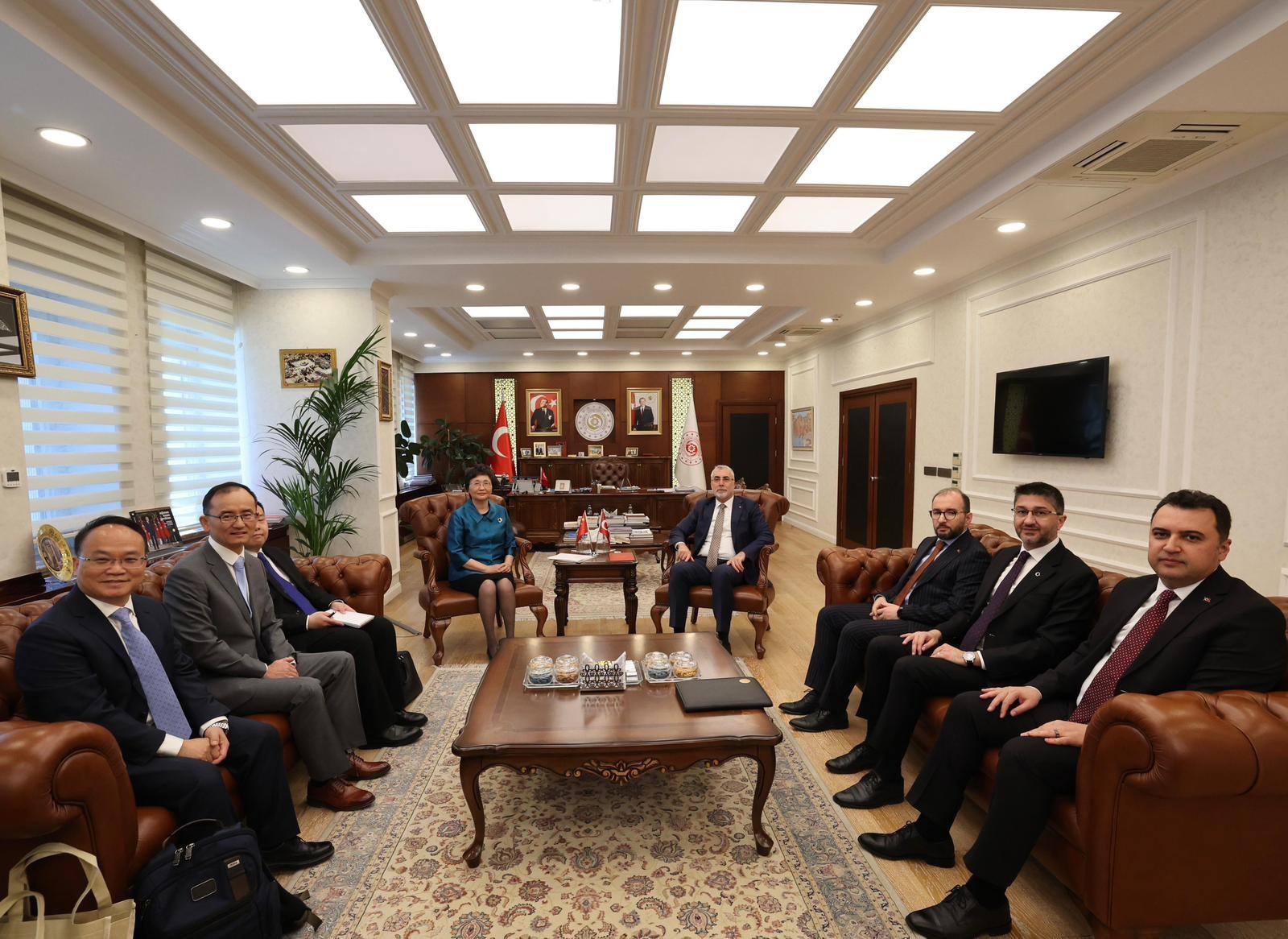 Çalışma ve Sosyal Güvenlik Bakanı Prof. Dr. Vedat Işıkhan, Türkiye ile Çin arasındaki ilişkilere yeni bir ivme kazandırmak amacıyla, Çin İnsan Kaynakları ve Sosyal Güvenlik Bakanı Wang Xiaoping ve beraberindeki heyeti Çalışma ve Sosyal Güvenlik Bakanlığında ağırladı.